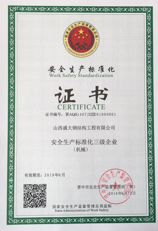 山西盛大鋼結(jié)構(gòu)工程有限公司 山西盛大鋼結(jié)構(gòu)工程有限公司成立于1996年,坐落于國家歷史文化名城——山西祁縣。擁有兩大智能化鋼結(jié)構(gòu)生產(chǎn)基地,占地110畝,建筑面積3萬余平方米,具備鋼結(jié)構(gòu)專業(yè)承包貳級(jí)、建筑工程施工總承包貳級(jí)資質(zhì),是一家集設(shè)計(jì)、制造、施工于一體的大型鋼結(jié)構(gòu)工程企業(yè)。 盛大鋼構(gòu)是中國鋼結(jié)構(gòu)協(xié)會(huì)會(huì)員單位,山西鋼結(jié)構(gòu)協(xié)會(huì)副會(huì)長單位,山西建筑企業(yè)商會(huì)理事單位,山西省土木建筑學(xué)會(huì)會(huì)員單位,擁有國家知識(shí)產(chǎn)權(quán)局注冊(cè)商標(biāo)。公司已通過ISO9001質(zhì)量管理體系認(rèn)證,體系覆蓋鋼結(jié)構(gòu)加工與施工等核心… more +